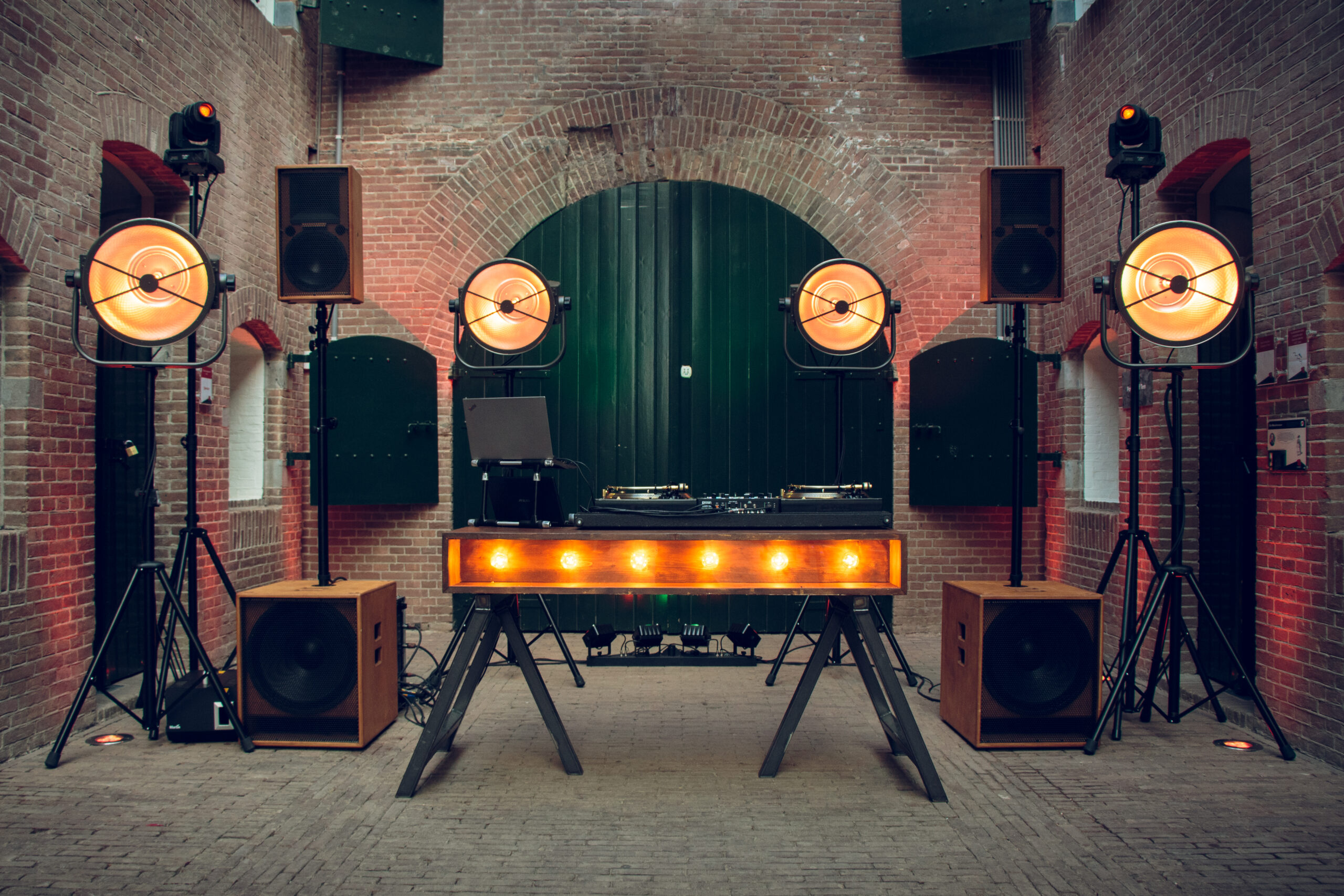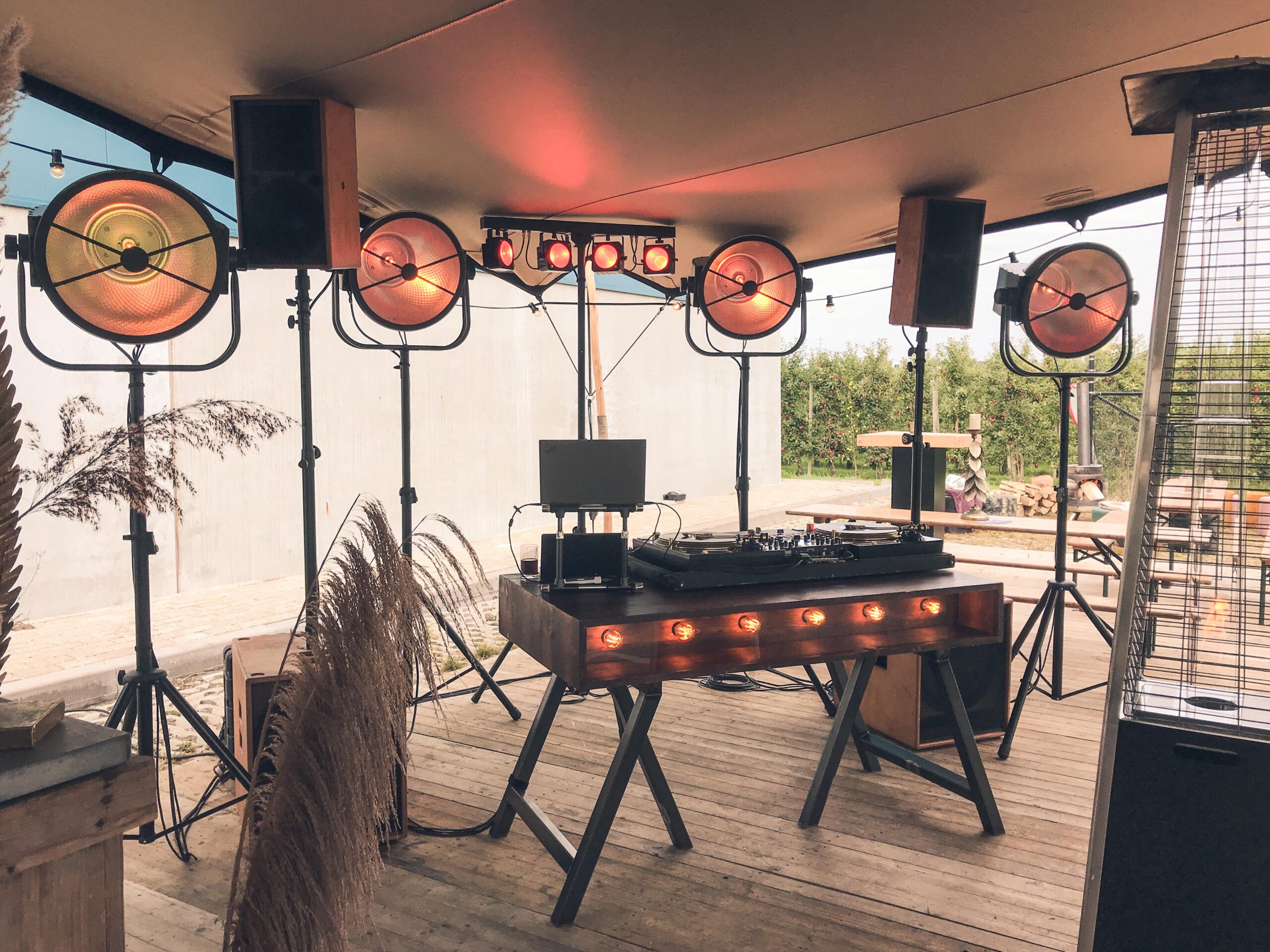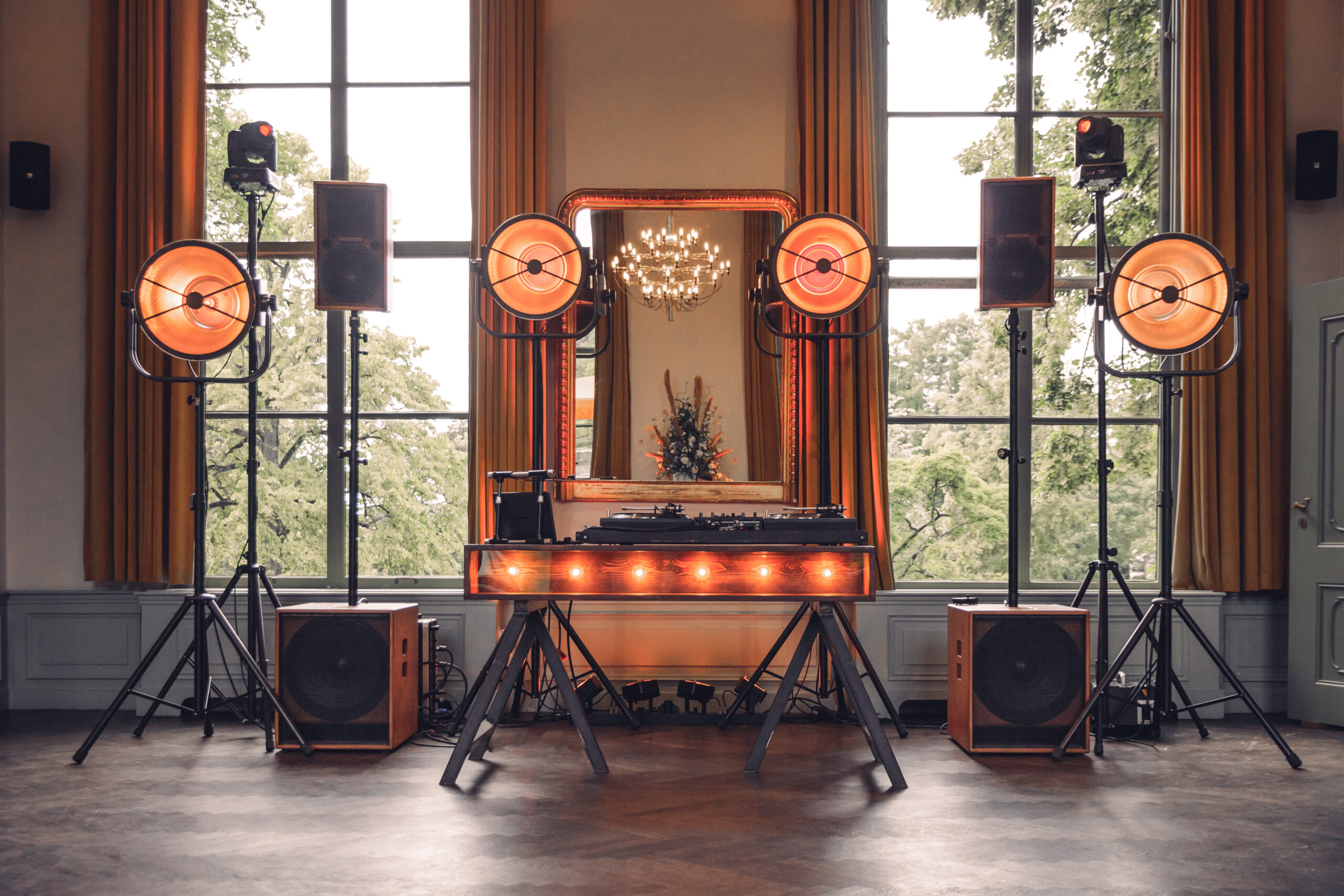 • 4x uplight spots achter de dj. Veranderen van kleur