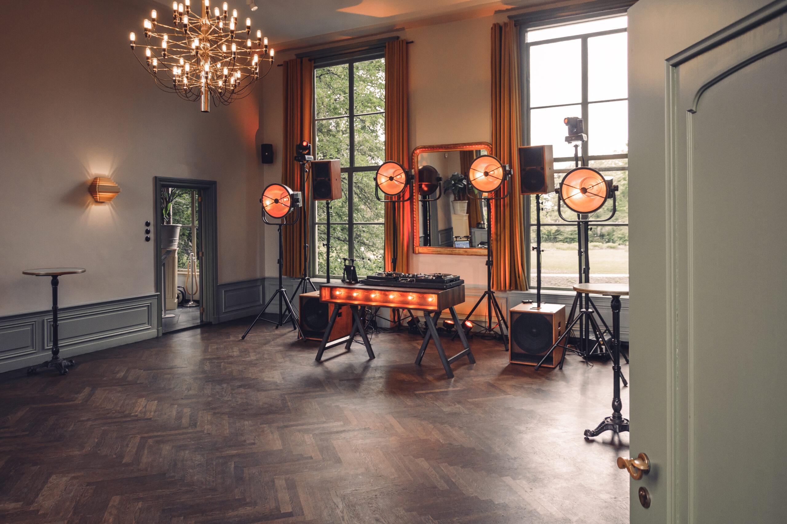 Licht – Voor de juiste sfeer of club feel hebben we een mooi lichtplan gemaakt. Het aanzicht als de gasten de zaal inkomen is warm en kalm. Maar als het tijd is om te dansen kan de DJ op zijn lichtcomputer een knop indrukken waardoor de verlichting in een party modus gaat.